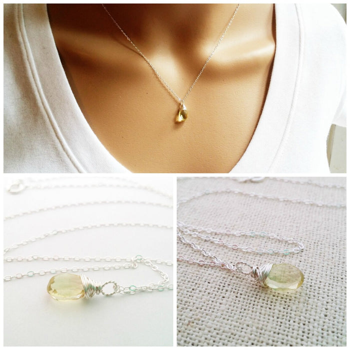 Yellow Citrine Necklace - November Birthstone - Dainty Drop Necklace - Sterling Silver Necklac