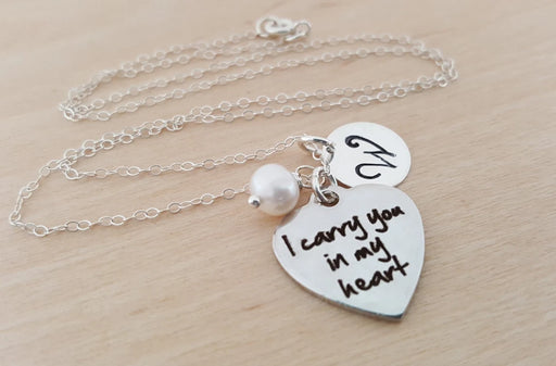View full detailsI Carry You in My Heart Necklace β Sterling Silver with Birthstone & Initial Charm