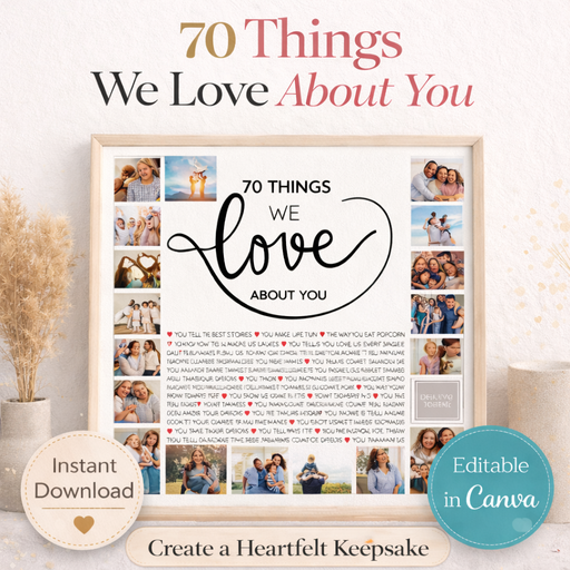 View full details70 Things We Love About You β Canva Template Printable | Custom 70th Birthday Gift