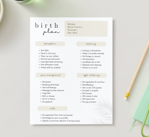 Editable Canva Birth Plan Template – 2 Page PDF in 3 Minimalist Designs (Instant Download)
