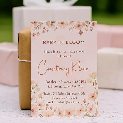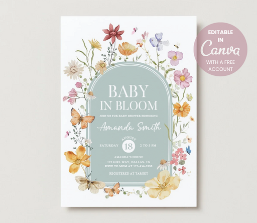 Celebrate a new little life with style and charm using this beautifully designed "Baby in Bloom" baby shower invitation template. With soft wildflo...