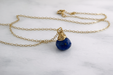 A rich, deep blue lapis lazuli briolette takes center stage in this delicate, handcrafted necklace. Each 8mm gemstone is individually wire wrapped by hand using 14k gold filled jeweler’s wire and suspended from a dainty 18-inch gold filled chain.