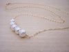 This dainty necklace is handcrafted with genuine white freshwater pearls, wire wrapped tightly by hand and attached to a delicate 14k yellow gold filled chain. Necklace measures 18 inches long and is finished with a secure lobster clasp.