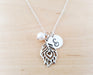 Peacock Feather Necklace – Sterling Silver with Birthstone & Initial Charm