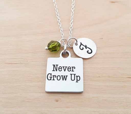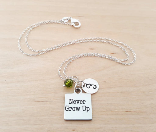 View full detailsNever Grow Up Necklace β Sterling Silver with Birthstone & Initial Charm