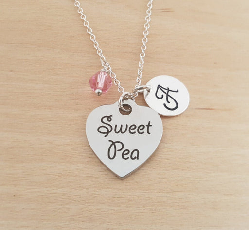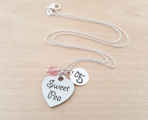 View full detailsSweet Pea Necklace β Sterling Silver with Birthstone & Initial Charm