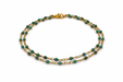This double-strand African turquoise bracelet features small, beautifully variegated green-blue beads wire wrapped by hand onto gold filled chain in a rosary-style design. The natural marbling in each stone gives subtle depth and character, making every bracelet unique.