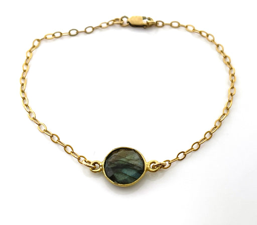 View full detailsFlash Labradorite Bezel Bracelet β 14k Gold Filled Chain β Handmade in Raleigh NC β 7.25" with Lobster Clasp, Gift Box Included