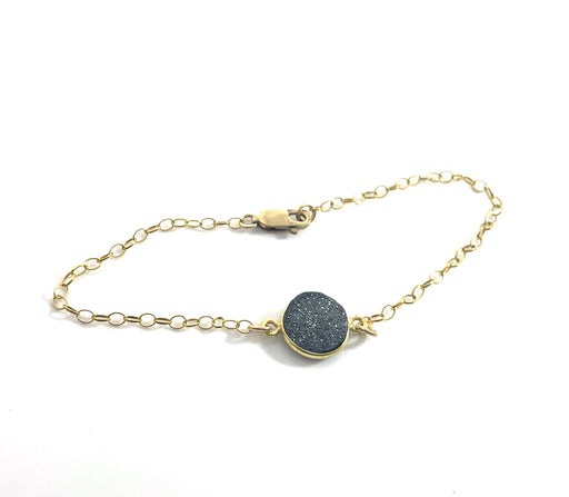 Dainty Gray Druzy Bracelet β 14k Gold Filled Chain β Sparkling Gemstone β Handmade in Raleigh