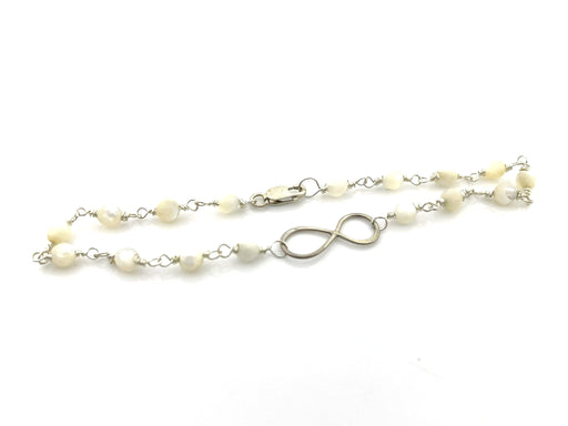 A timeless symbol in soft, natural tones. This one-of-a-kind bracelet features luminous white shell beads with a subtle, pearly glow, hand wire wra...
