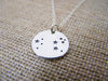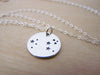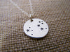 This dainty necklace is handcrafted featuring an adorable Sterling silver zodiac Leo constellation charm. Attached to an 18 inch delicate Sterling silver chain with spring ring closure. Zodiac pendant measures 14mm in diameter.