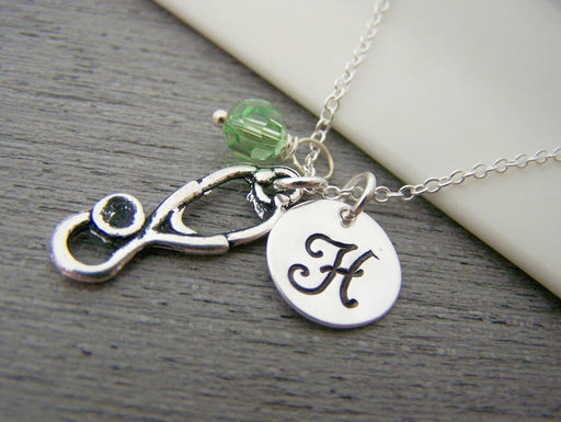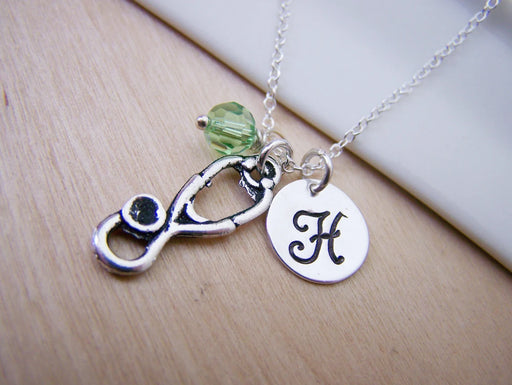 View full detailsStethoscope Necklace β Sterling Silver with Birthstone & Initial Charm