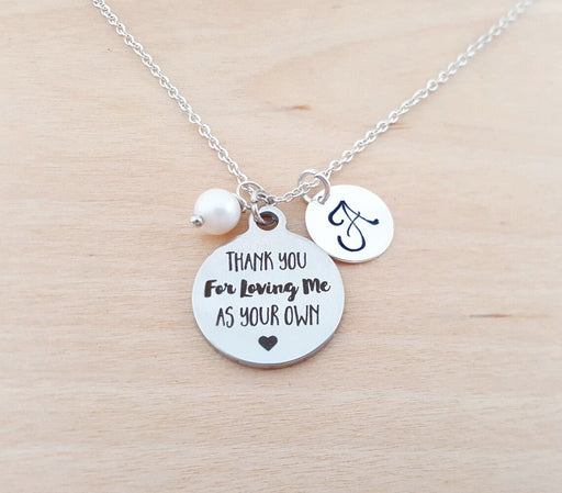 View full detailsThank You For Loving Me As Your Own Necklace β Sterling Silver with Birthstone & Initial β Personalized Gift