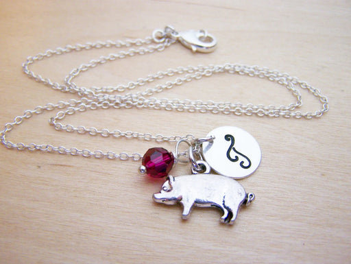 View full detailsPig Necklace β Sterling Silver with Birthstone & Initial Charm
