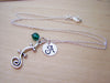 Hand‑stamped initial disc + Swarovski crystal birthstone or freshwater pearl
