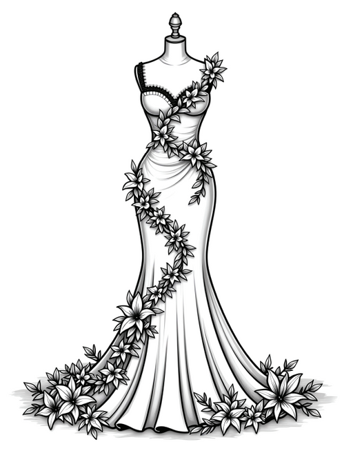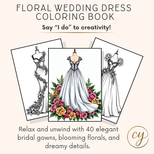 View full detailsFloral Wedding Dress Coloring Book β 40 Page Printable PDF
