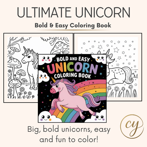 Discover a world of unicorn magic with our Unicorn Bold & Easy Coloring Book! This 100-page digital download features big, bold unicorn designs...