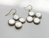 These luminous earrings feature four natural freshwater coin pearls, carefully soldered into a modern cluster design that’s both bold and wearable. Set with 14k gold filled ear wires, each earring dangles about 1.5 inches from the top of the ear wire curve.