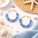 OOAK Blue Beaded Hoop Earrings – Gold Plated Stainless Steel, 2" Handmade Hoops