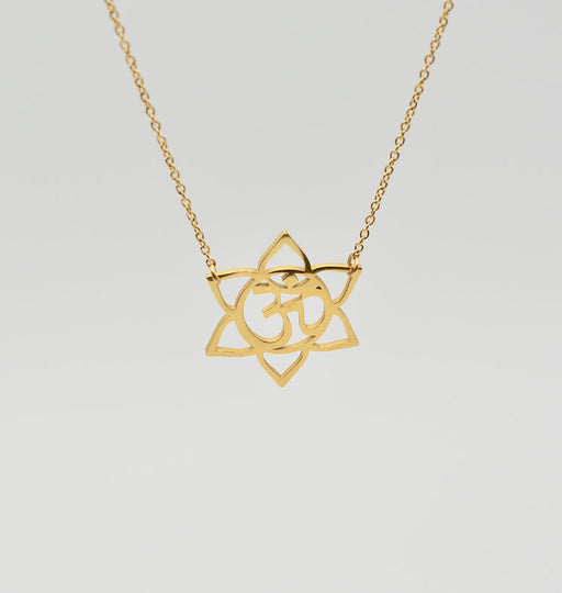 View full detailsGold Lotus Om Necklace β 14k Gold Filled, Dainty Yoga Jewelry, 17" Handmade Necklace