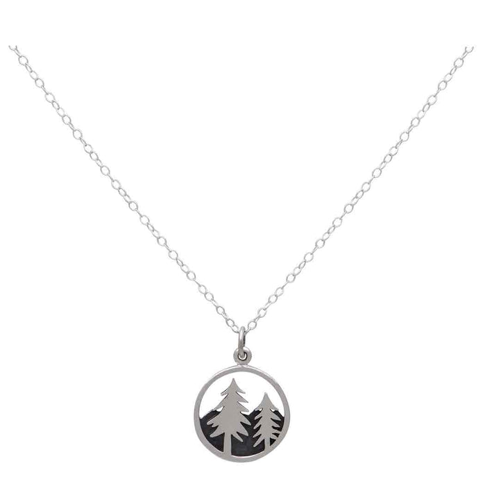 Sterling Silver Trees and Mountain Necklace – 16" Chain