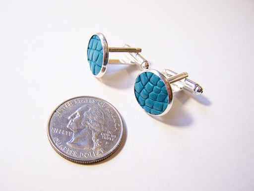 View full detailsAqua Recycled Caiman Leather Cuff Links – Silver Tone