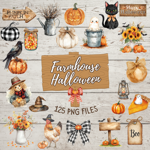 Bring cozy farmhouse charm to all your Halloween projects! This exclusive digital bundle features 125 unique, handpicked PNG clip art images in a w...