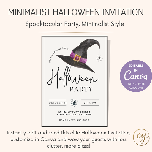 Host your Halloween party in style with this elegant, minimalist invitation!Easily customize all the details in Canvaβjust edit, download, and send...