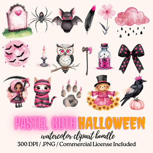 View full detailsPastel Goth Halloween Clipart Bundle β 172 Watercolor PNG Images β Commercial Use