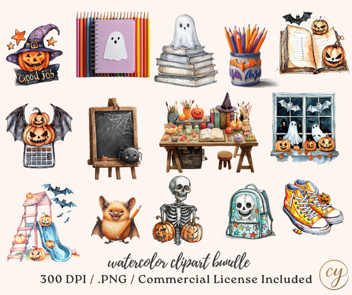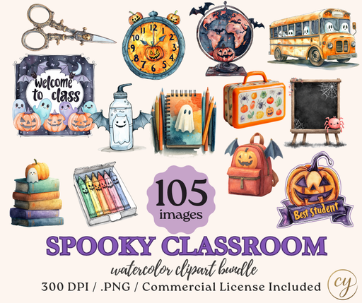 View full detailsSpooky Classroom Watercolor Clipart Bundle | 105 PNG Images | Halloween School Decor, Teacher Printables