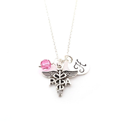Physician Assistant (PA) Charm Necklace – Personalized Sterling Silver Jewelry with Initial & Birthstone or Pearl
