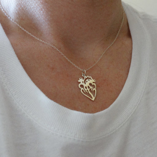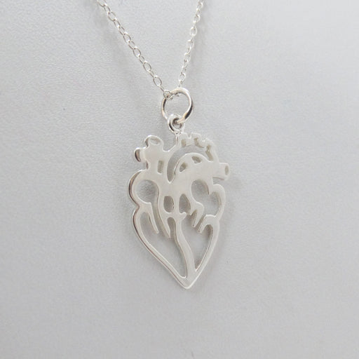 Open Anatomical Heart Necklace – Sterling Silver Medical Heart Pendant on 16" Chain
