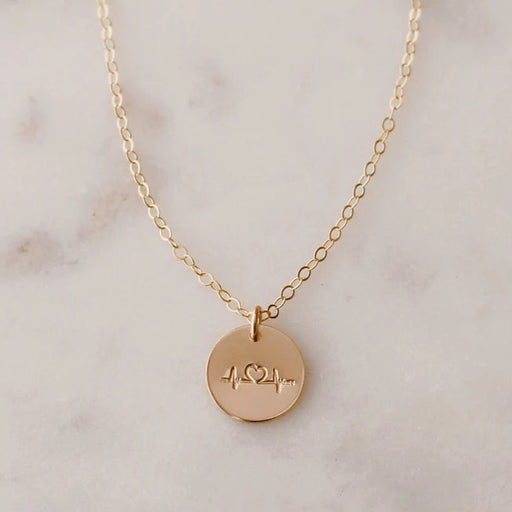 Heartbeat Necklace – Hand Stamped in Gold or Silver, 18" Chain