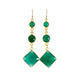 Turn heads in any room with these stunning triple-drop earrings, handcrafted with genuine green onyx gemstones in luxe 14k gold filled settings. Each earring features two round onyx stones stacked above a statement-making faceted diamond-shaped drop, creating an elegant, elongated silhouette.