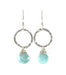 Hammered Sterling Circle & Amazonite Gemstone Earrings – 1.5”