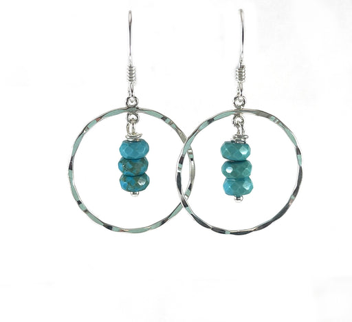 View full detailsHammered Sterling Silver Circle Earrings with Turquoise Trio β Handmade, 1β Dangle