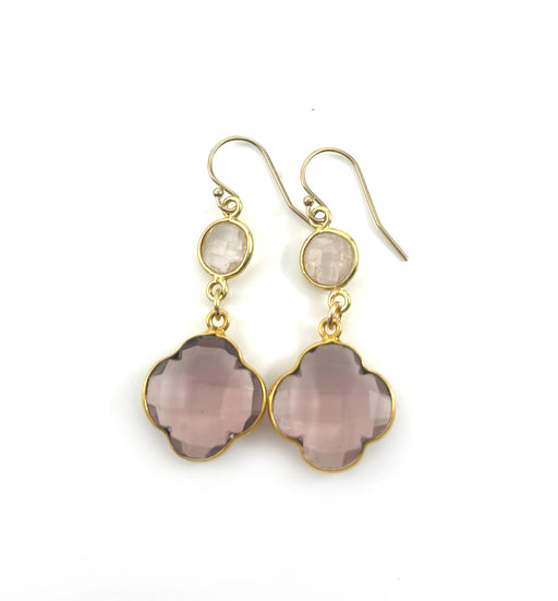 Add a touch of blush and sparkle to your look with these elegant rose quartz and morganite drop earrings. Each pair is handcrafted in Raleigh, NC b...