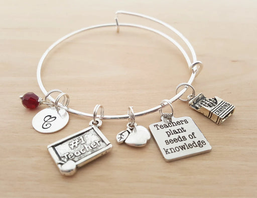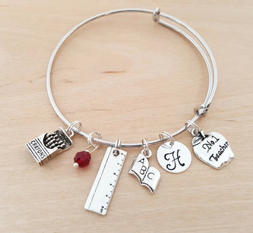 View full details#1 Teacher Bracelet β Adjustable Bangle with Birthstone & Initial
