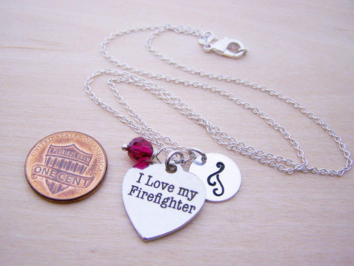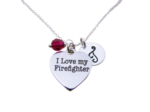 I Love My Firefighter Necklace β Personalized Sterling Silver Jewelry with Initial & Birthstone or Pearl