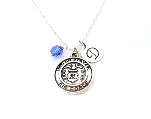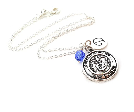 View full detailsPersonalized Air Force Necklace β Sterling Silver Chain with Birthstone & Initial