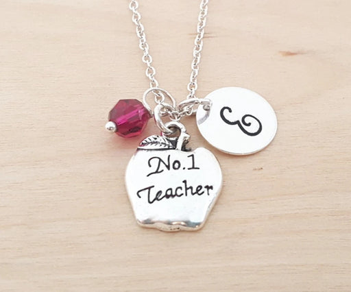 View full details#1 Teacher Necklace β Sterling Silver Chain with Birthstone & Initial
