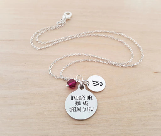 View full detailsβTeachers Like You Are Special and Fewβ Necklace β Stainless Steel Charm with Sterling Silver Chain, Birthstone & Initial