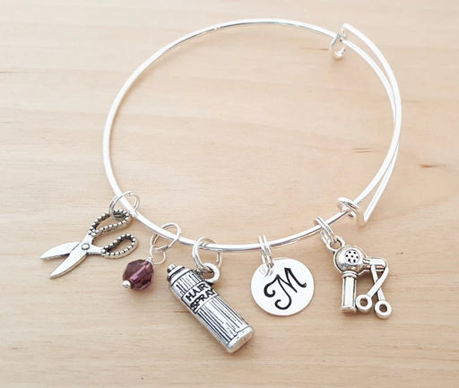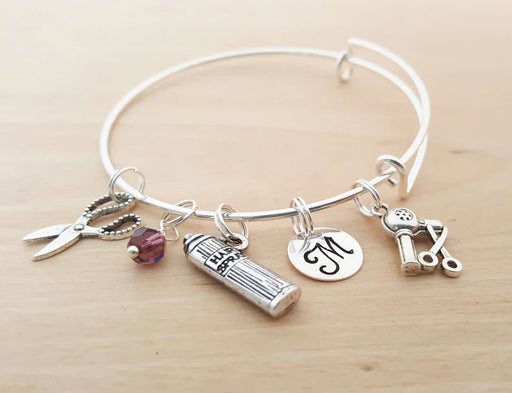 View full detailsPersonalized Hair Stylist Charm Bracelet β Adjustable Bangle with Birthstone & Initial