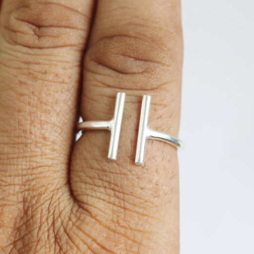 Meet your new everyday minimalist staple. This handmade sterling silver ring features two sleek parallel bars on an open-front band, creating a mod...