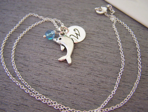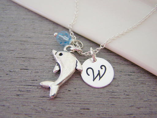 View full detailsPersonalized Dolphin Necklace β Sterling Silver Chain with Birthstone & Initial