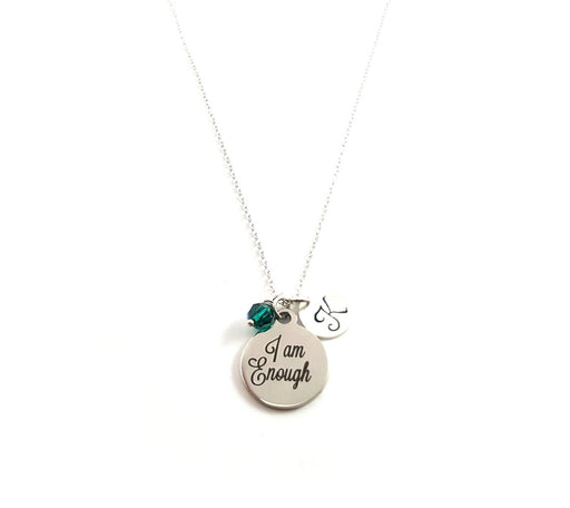 View full detailsI Am Enough Necklace β Sterling Silver with Birthstone & Initial Charm