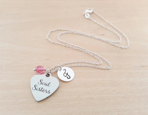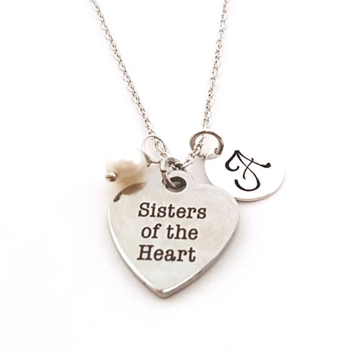 View full detailsSisters of the Heart Necklace β Stainless Steel Charm on Sterling Silver Chain with Birthstone & Initial
