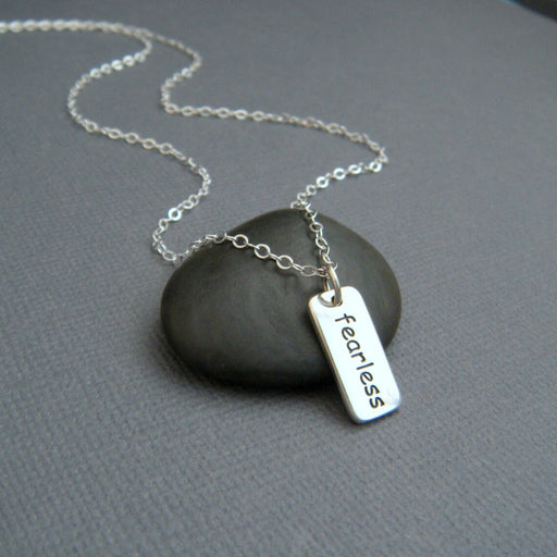 A quiet reminder of bold strength. This Fearless Necklace features a tiny sterling silver tag stamped with the word βfearlessββa simple, powerful p...