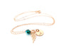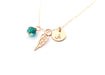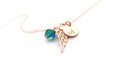 This necklace is handcrafted featuring a beautiful 14k rose gold filled angel wing charm adorned by a genuine freshwater pearl or Swarovski birthstone crystal and petite rose gold filled disc, hand stamped with your initial. Made to order with an 18 inch, shiny 14k rose gold filled chain and secure spring ring clasp.