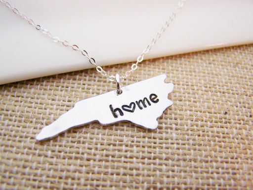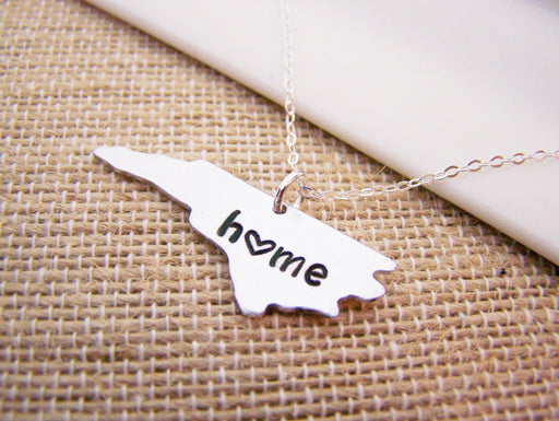 North Carolina Home State Hand Stamped Heart North Carolina State Sterling Silver Necklace